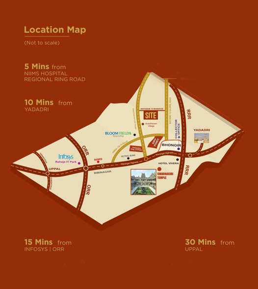 Best place to invest for your future. Venture located near Yadadri Temple City, with easy access to Regional Ring Road, MMTS & Railway Station. Clear title, spot registration, and ready for construction with all modern amenities.